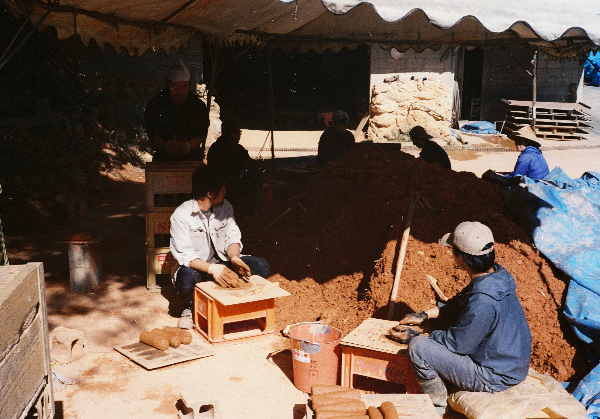 As I wandered among these sleeping giants, I noticed a cloth tent shielding a group of young people from the partial sun. They were gathered around a mountain of raw clay, their hands covered in earth. The energy wasn't heavy or exhausted; they were vibrant, focused, and visibly happy.